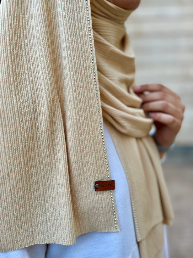دورشال برش خورده و یک سمت شال نگین خطی دارد.
