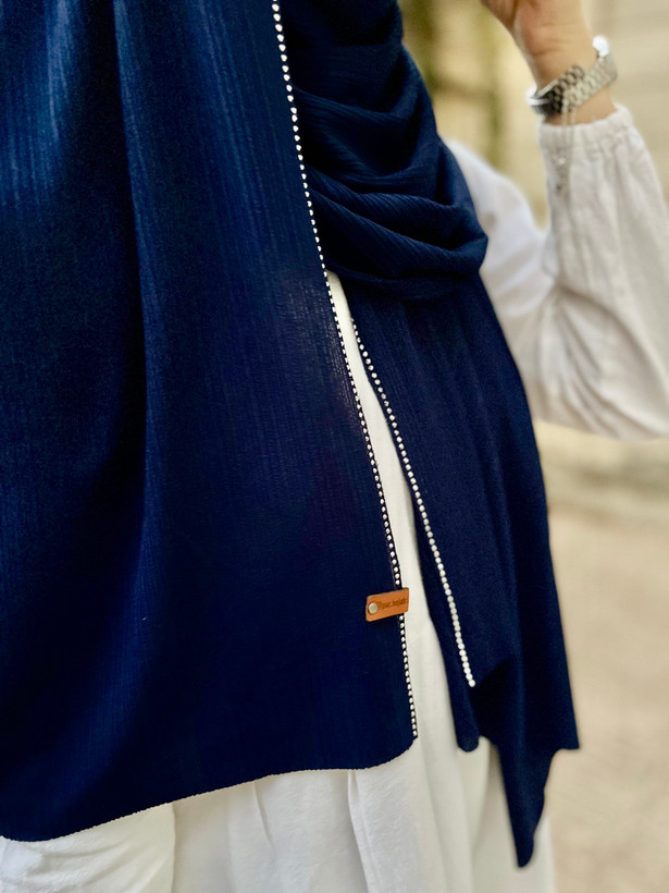 دورشال برش خورده و یک سمت شال نگین خطی دارد.