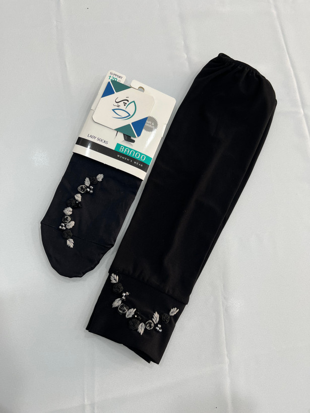 ست جوراب و ساق دست پنج گل مشکی طوسی