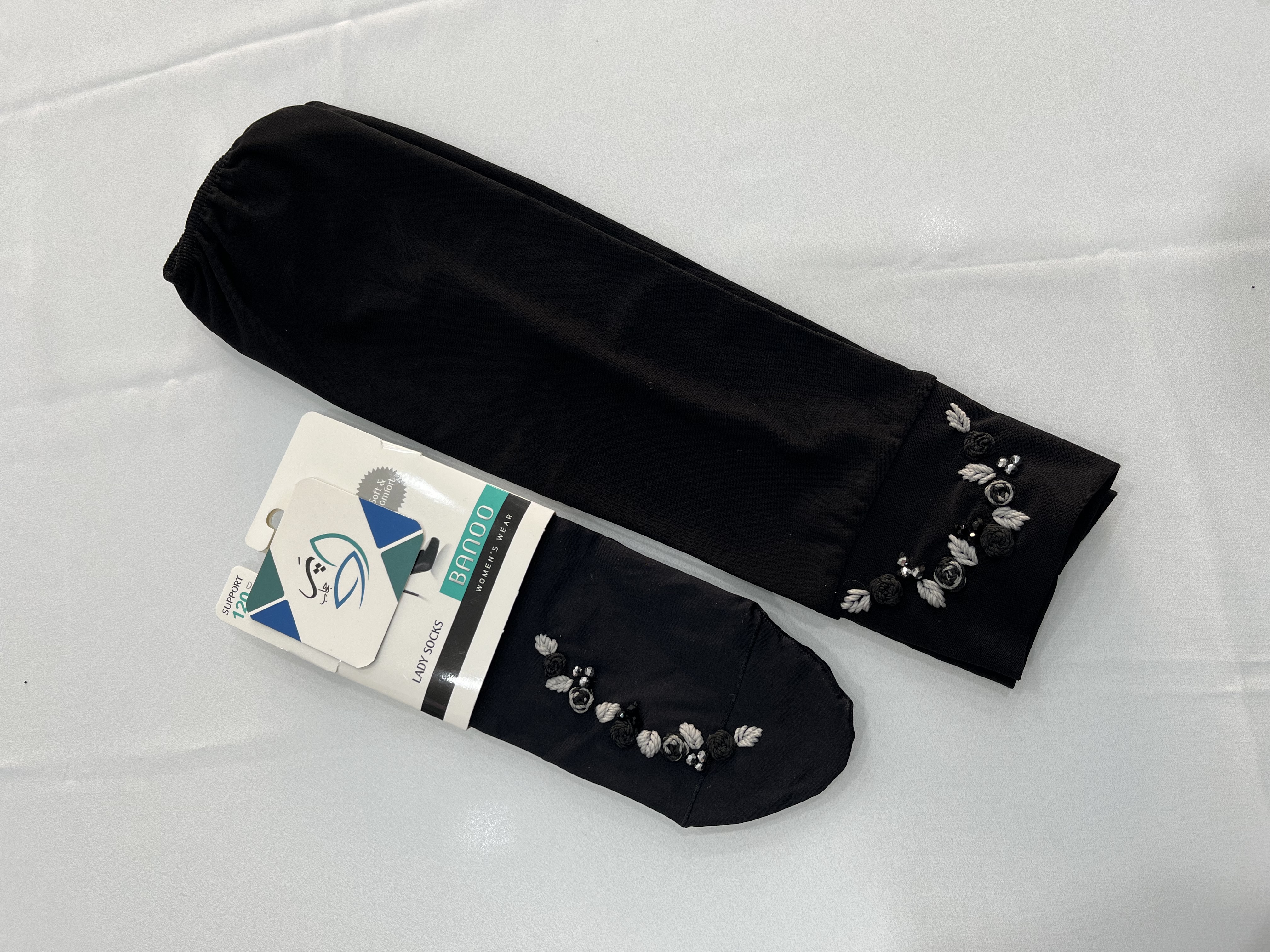 ست جوراب و ساق دست پنج گل مشکی طوسی