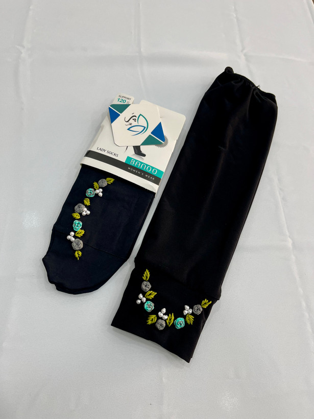 ست جوراب وساق دست پنج گل طوسی فیروزه ای