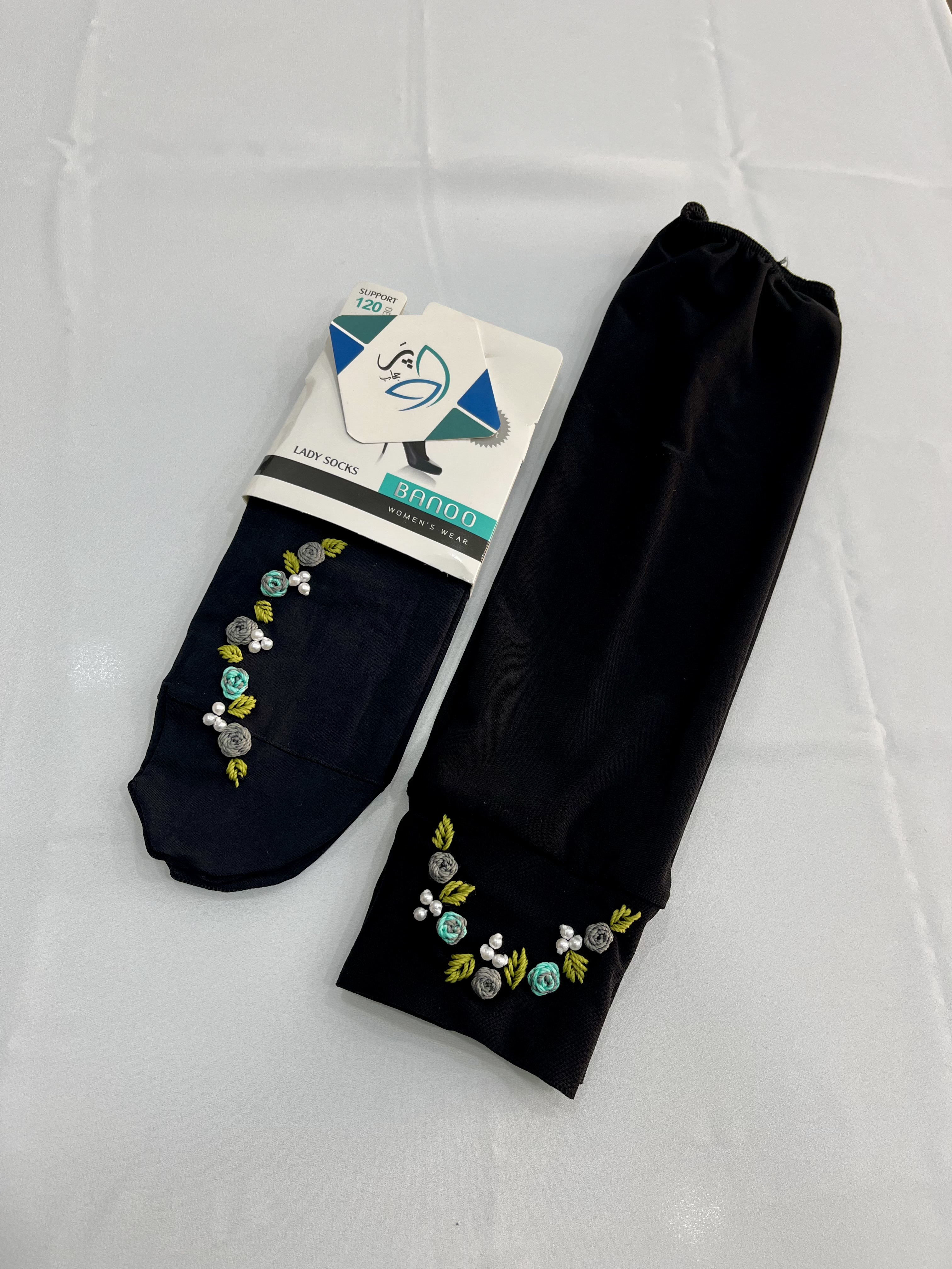 ست جوراب وساق دست پنج گل طوسی فیروزه ای