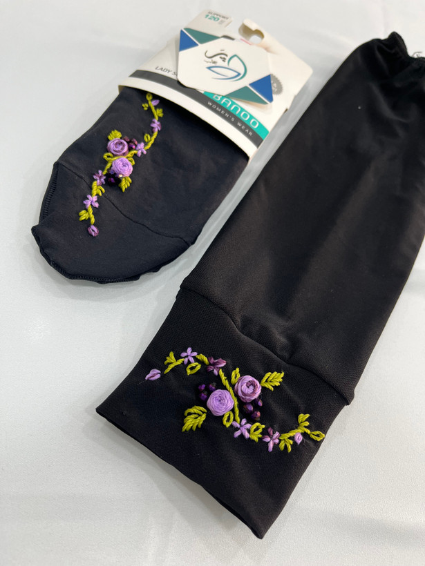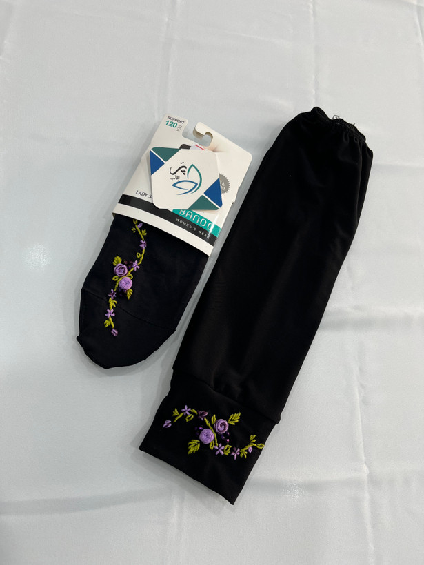ست جوراب و ساق دست دوگل بنفش