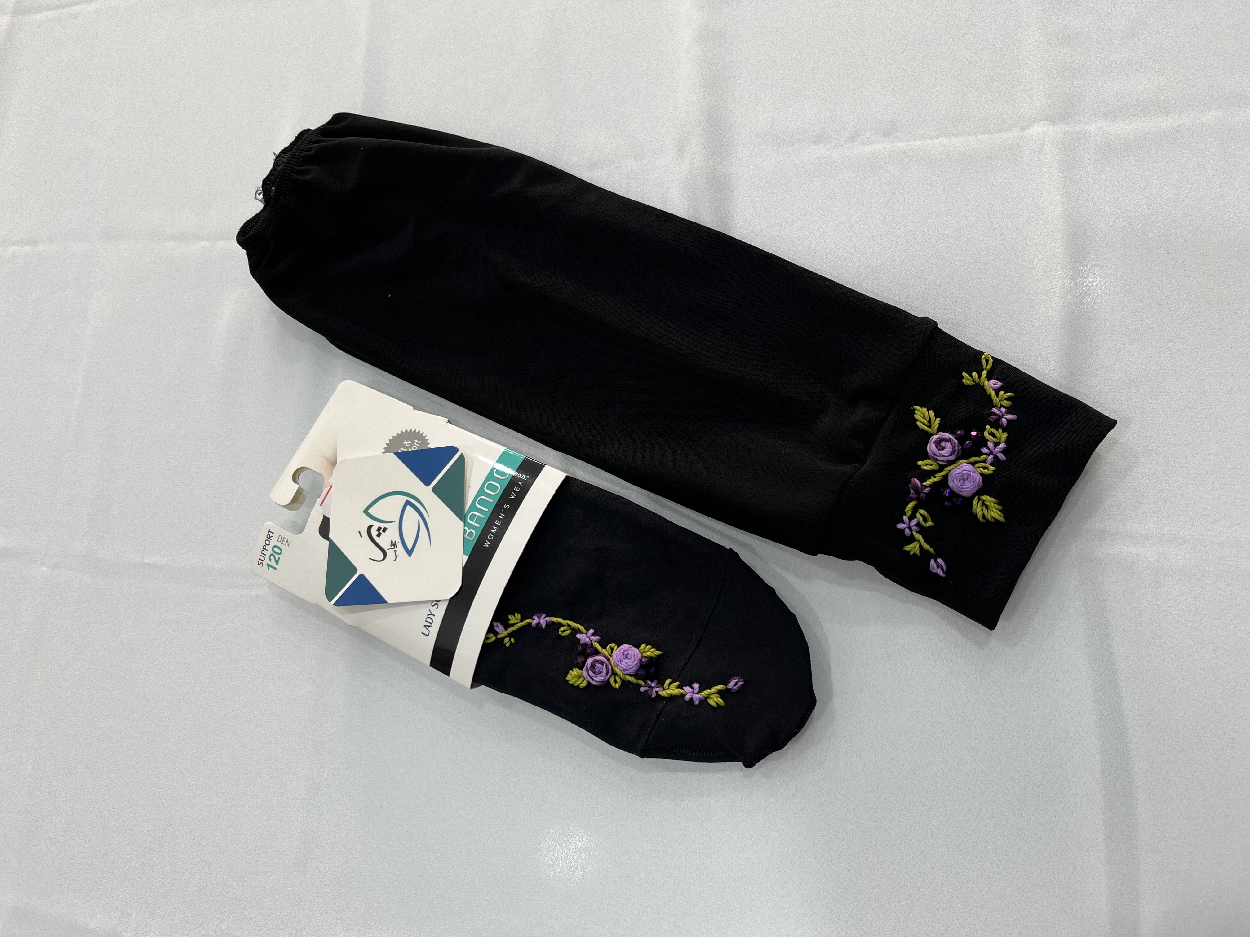 ست جوراب و ساق دست دوگل بنفش