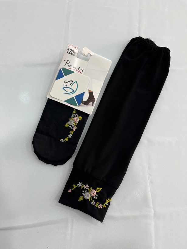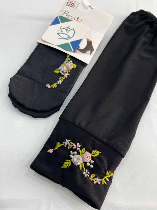 ست جوراب وساق دست دوگل طوسی صورتی