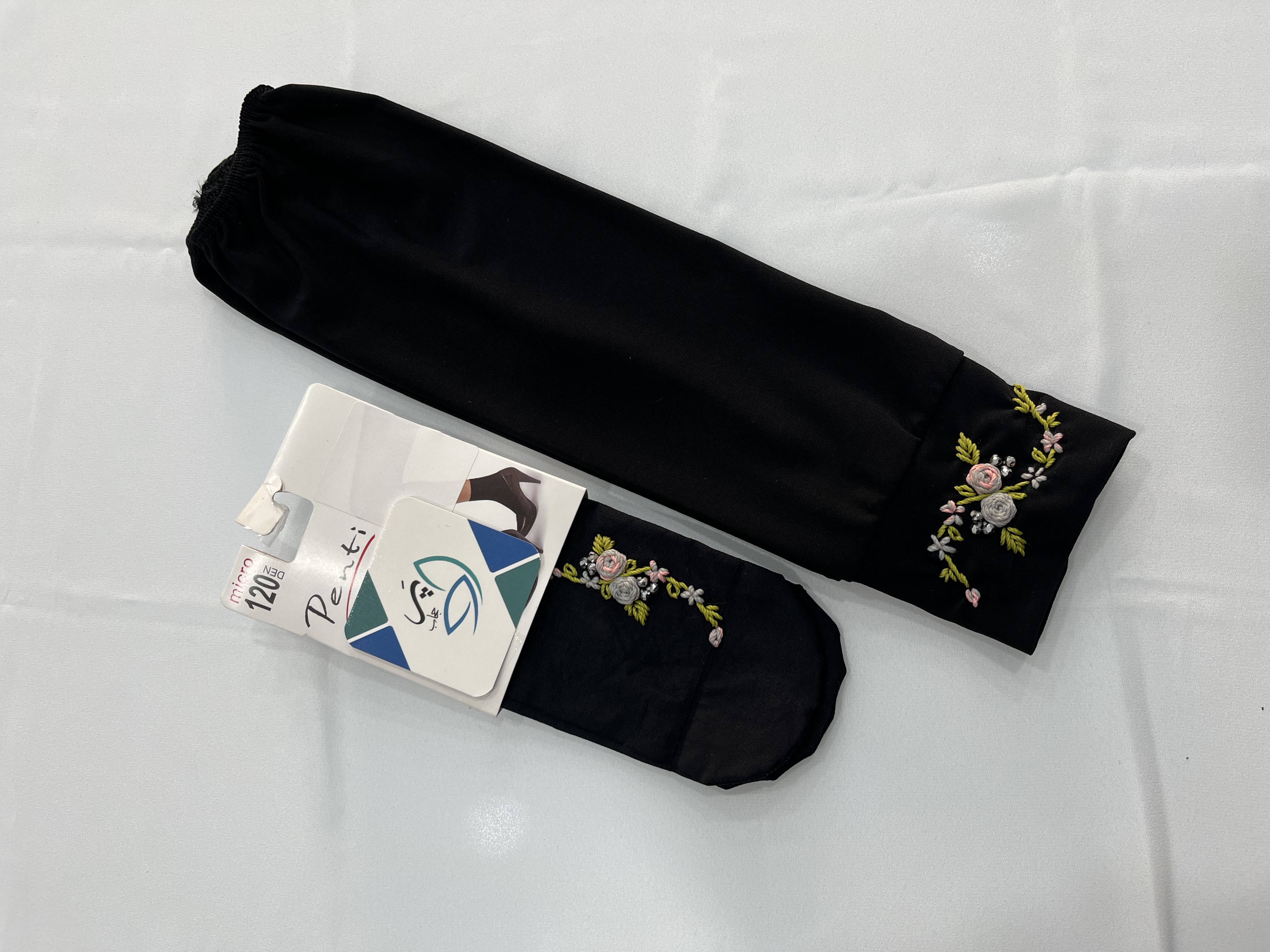 ست جوراب وساق دست دوگل طوسی صورتی