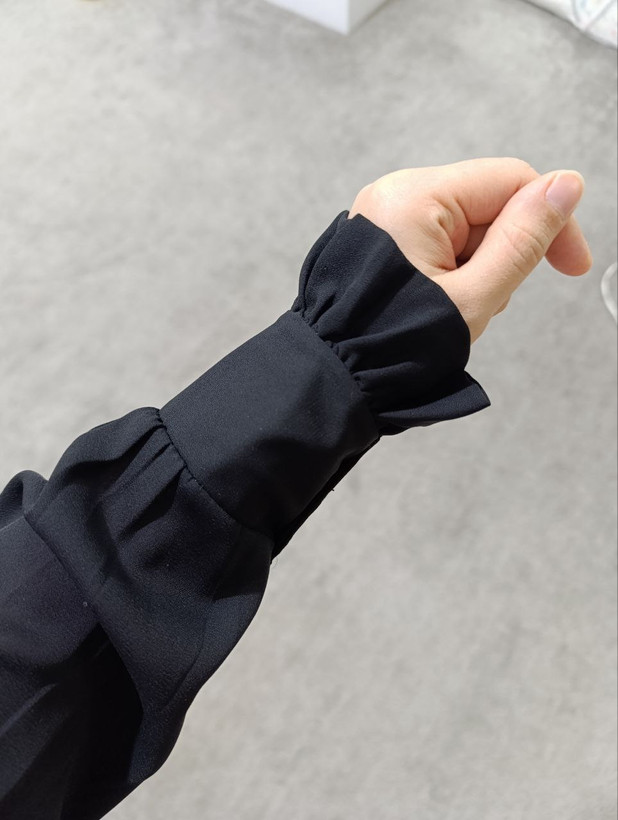 ساق دست شومیز مچ چین دار مشکی