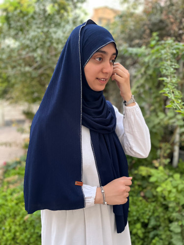 ناموجودروسری تک رنگ کرپ حریر سرمه ای